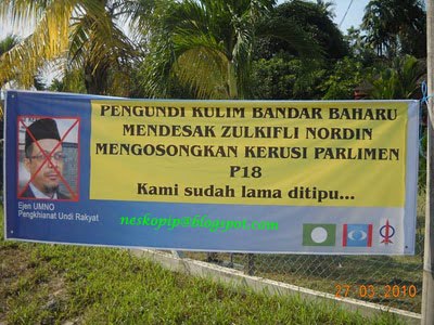 Zul Kulim yang menenggek di atas kerusi Parlimen Kulim Bandar Baru yang tidak diredhai oleh majoriti pengundi kawasan tersebut, di dalam tulisannya di sini, cuba membela Najib agar tidak berdebat dengan Anwar. Beliau mahu Najib setaraf dengan dia yang penakut lagi bacul kerana beliau sendiri pun takut berdebat dengan YB Khalid Samad tentang isu Kalimah Allah. Banyak kali dicabar, kecut peguam tak ada kelas ini.